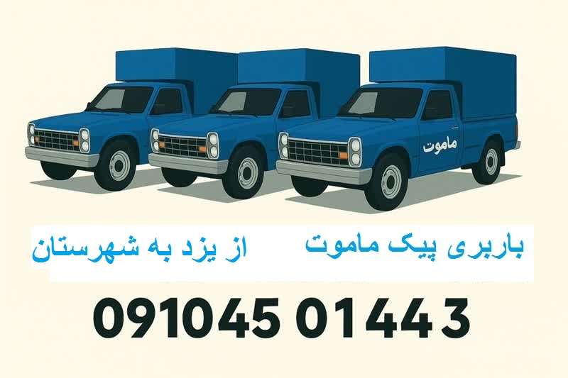 باربری یزد به تهران و شهرستان ها توسط نیسان، خاور، تک، جفت، تریلی با سامانه پیک ماموت بار جهت استعلام نرخ و اطلاعات بیشتر با شماره 09104501443تماس حاصل فرمائید